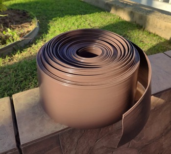 O separador de jardim na cor marrom foi pensado e desenvolvido para proporcionar mais harmonia visual nos projetos de jardim com pedras, cascalhos e argila expandida, assim assemelhando-se ao tom. O produto também teve uma ótima aceitação para uso em fechamento de cercados, dando um charme a mais e proporcionando privacidade e aconchego. Possui 11,5cm de altura e contêm proteção UV, Produzidos em rolos de 25mt e 50mt